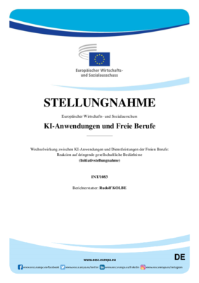 Am 18. September 2025 hat das Plenum des Europäischen Wirtschafts- und Sozialausschusses (EWSA) die Initiativstellungnahme „KI Anwendungen und Freie Berufe“ verabschiedet.